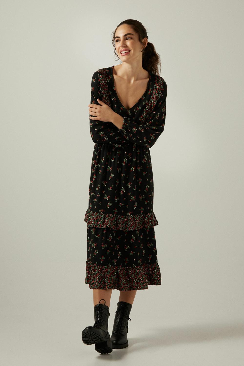 Springfield Vestido Midi Estampado Mix Negro | Vestidos & Monos …