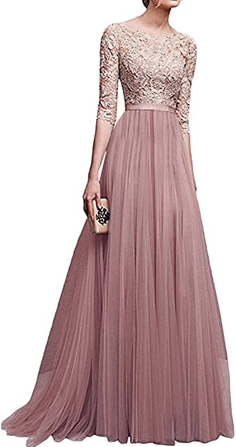 Mujer Vestidos Fiesta Encaje de Fiesta Manga 3/4 para Bodas Coctel Partido Largos Vestido